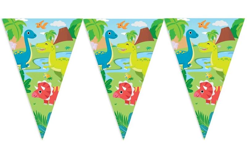 Guirlande de fanions dinosaures 10 m, 20x30 cm