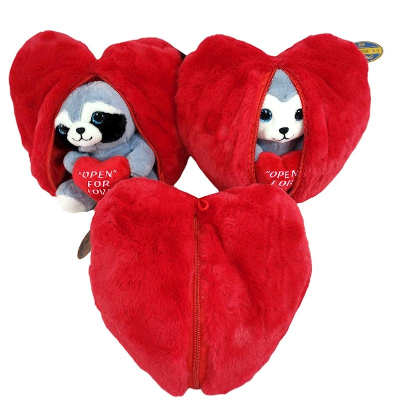 Peluche animaux en coeur rouge 22 cm, 3 ass.