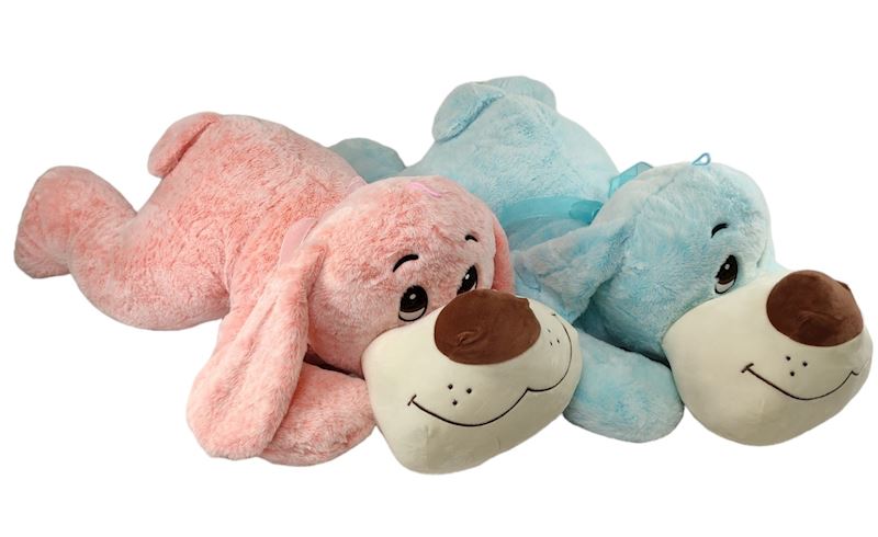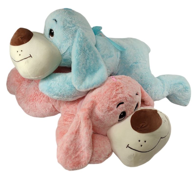 Peluche chien couché 80 cm 2 ass.