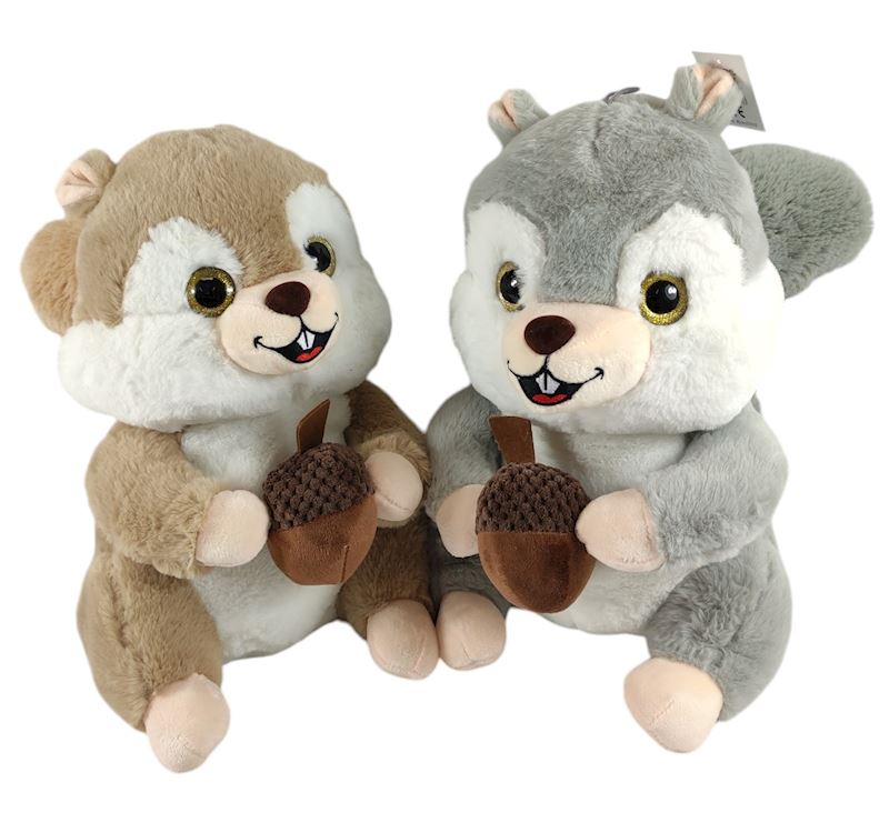 Peluche écureuil avec noix 35cm, 2 ass.