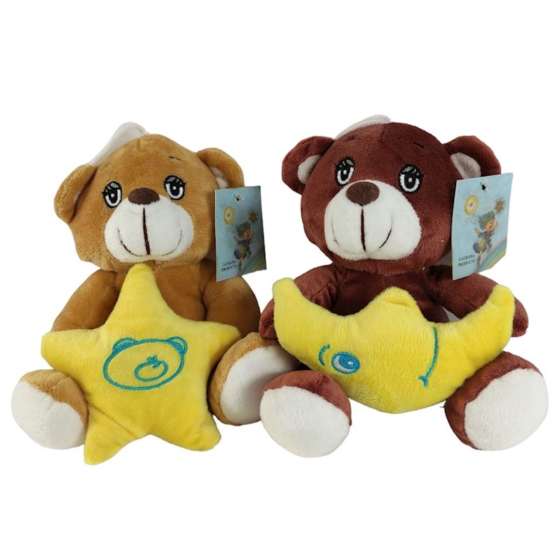 Peluche ours avec étoile ou lune, 16 cm, 2 sort.