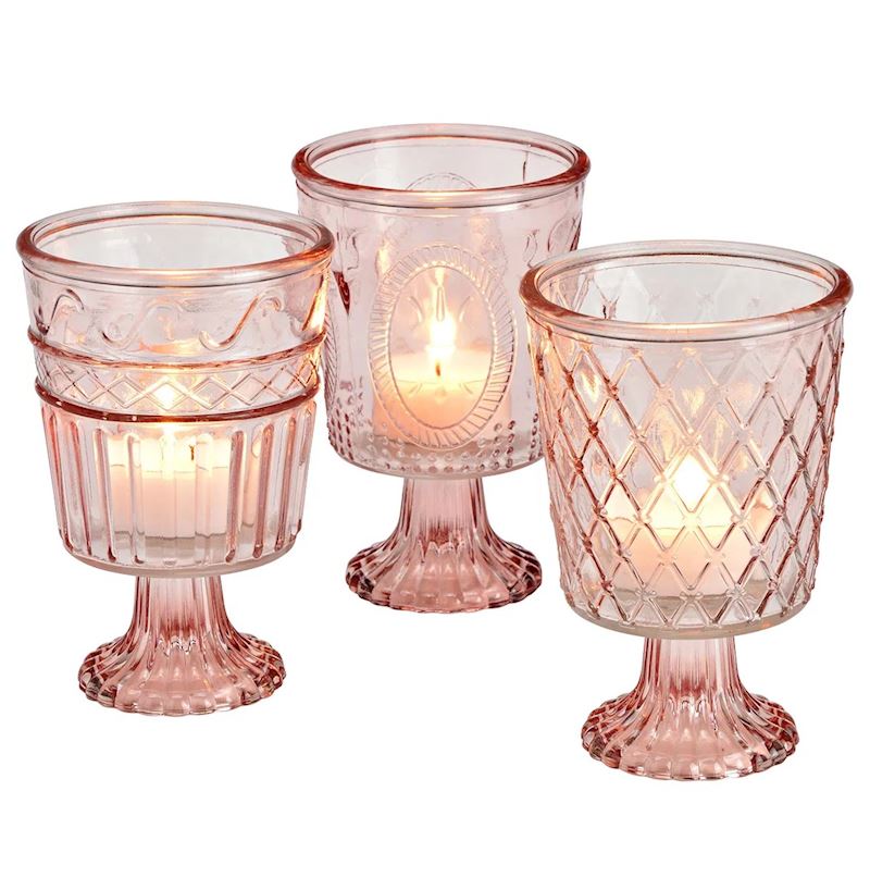 Photophore en verre, 3 ass. rosé 18x12 cm