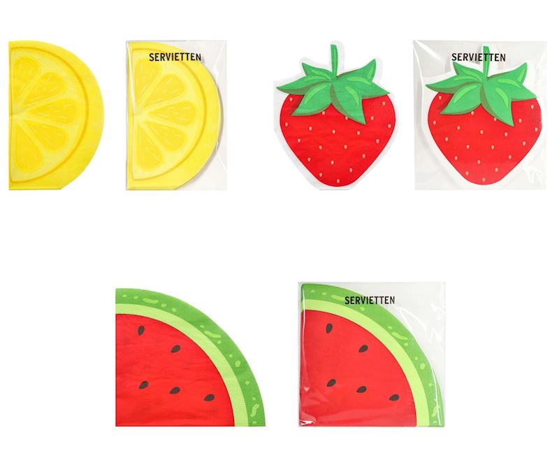 Serviette sihlouette de fruits 12 pc 3 ass