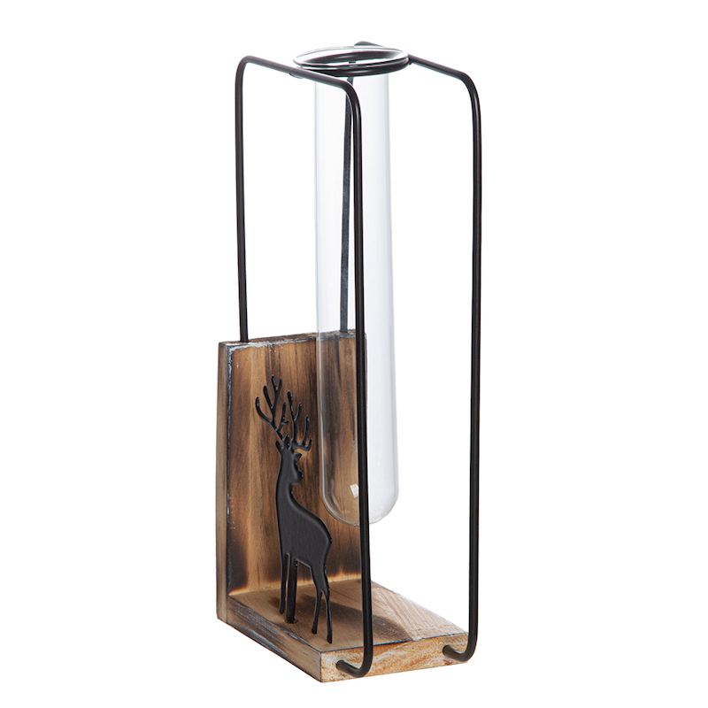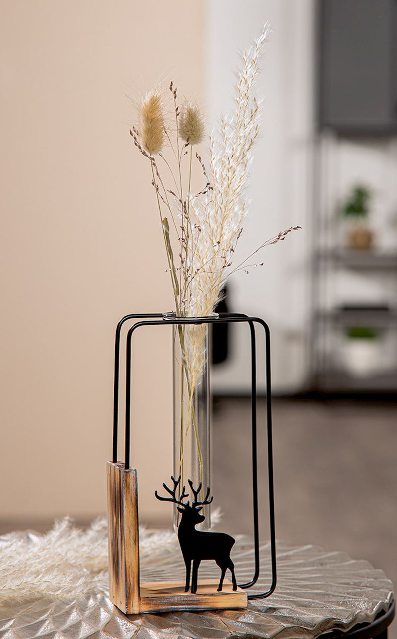 Vase dan une monture noire avec motif de cerf