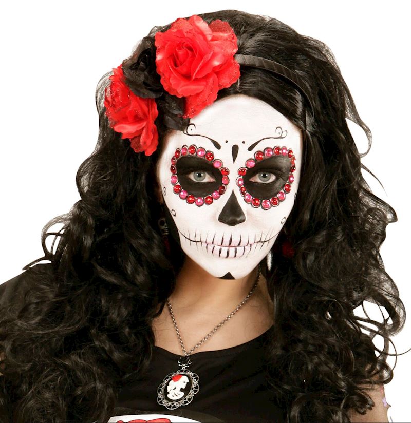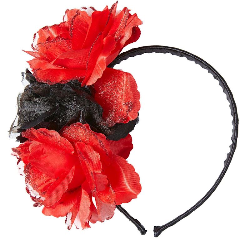 Serre-tête avec rose rouge et noir avec glitter