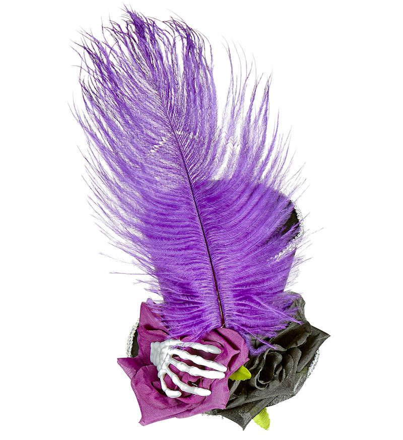 Mini haut de forme avec main squelette, roses et plumes