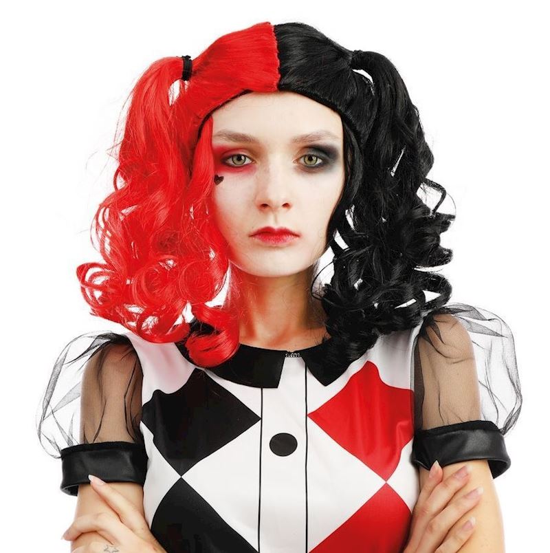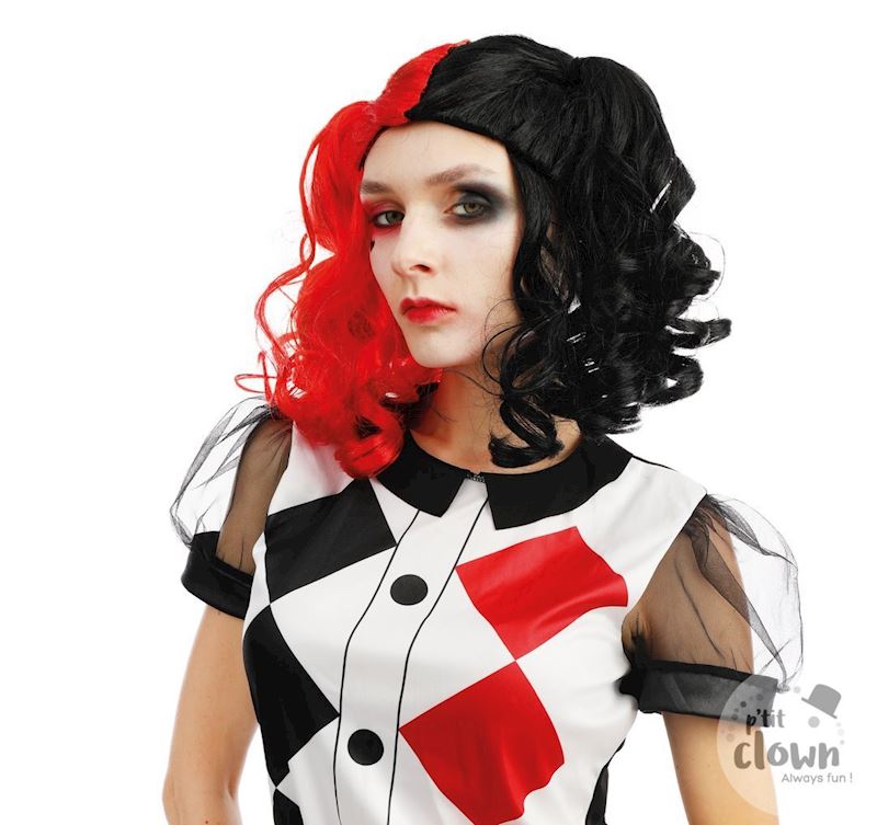 Perruque Arlequin rouge/noir
