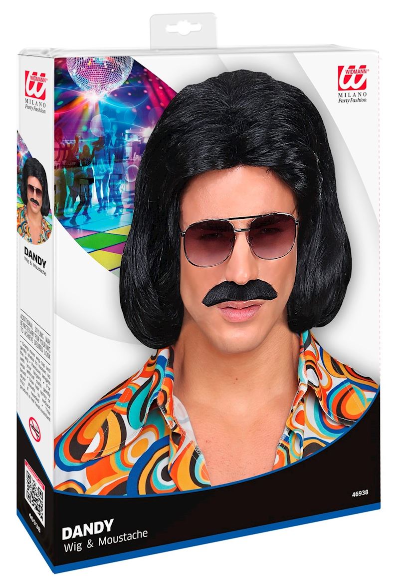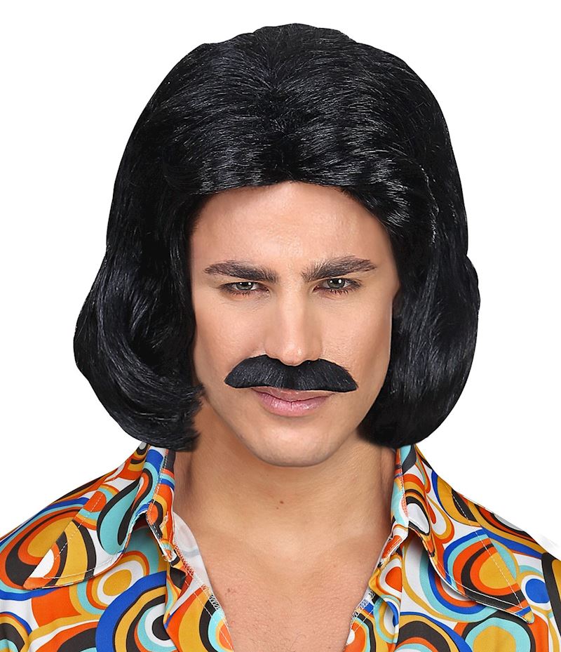Perruque noir avec moustache année 70