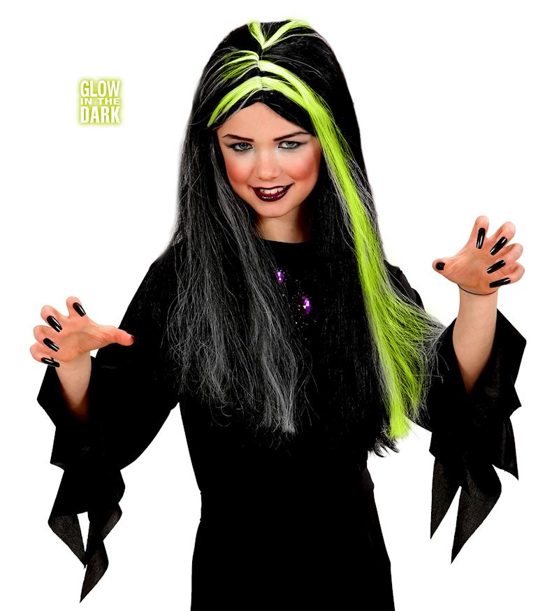 Perruque sorcière pour enfants avec mèches fluorescentes