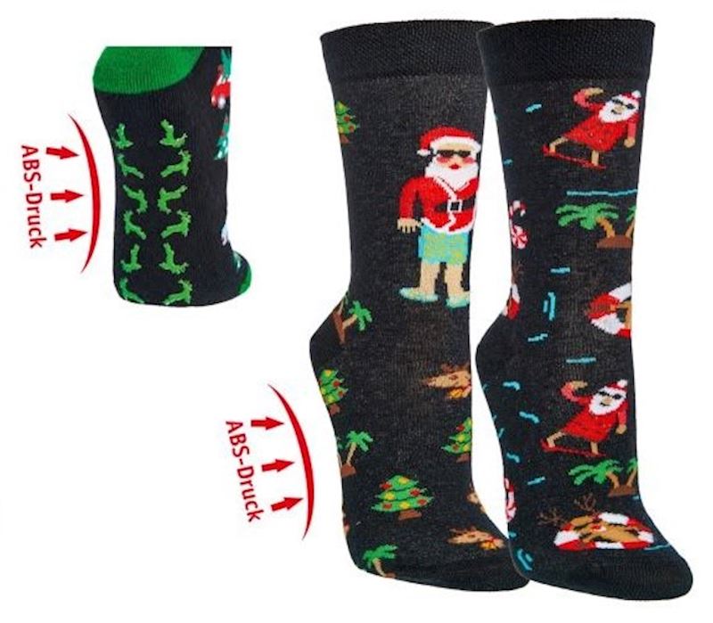 Pour les adolescents et les femmes Chaussettes d'intérieur avec des motifs de Noël amusants et une impression ABS antidérapante en forme de rennes. Qualité éponge complète et chaude - également super pour remplacer les pantoufles.