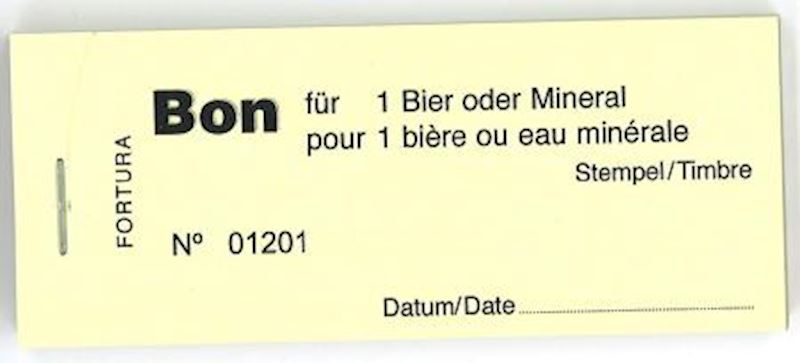 Bloc de bon avec 100 bons pour 1 bière ou eau minérale