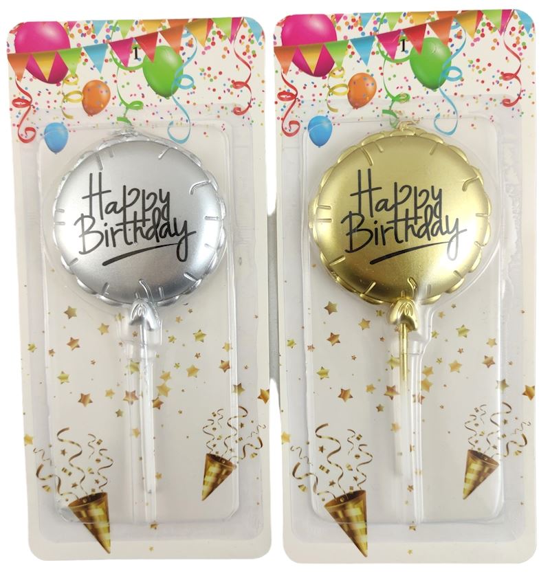 Bougie ballon pour gâteau 13cm Happy Birthday argent et or