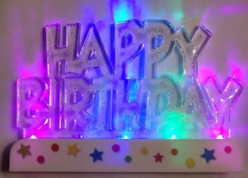 Décoration de gâteau Flashing Happy Birthday, multicolore