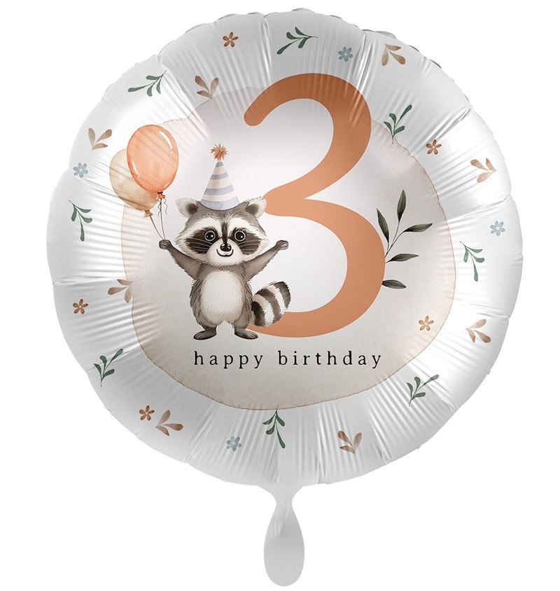 Ballon alum. 3ème anniversaire Coon Happy Birthday 43 cm