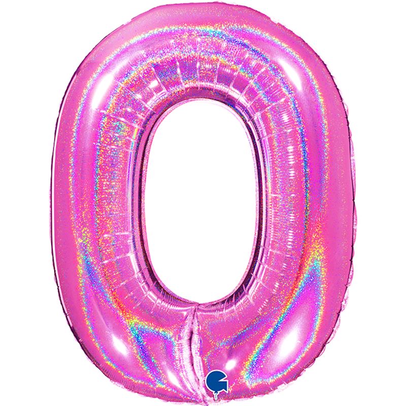 Ballon alum. Glitter Numéro 0 rose, 102 cm en sachet