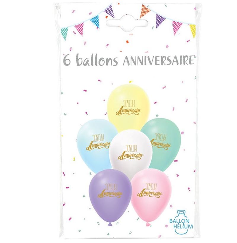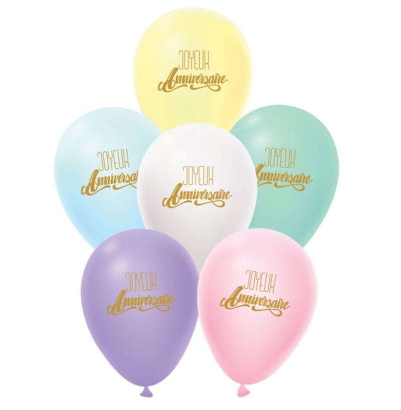 Ballons en gomme Pastell, 6 pcs. joyeux Anniversaire