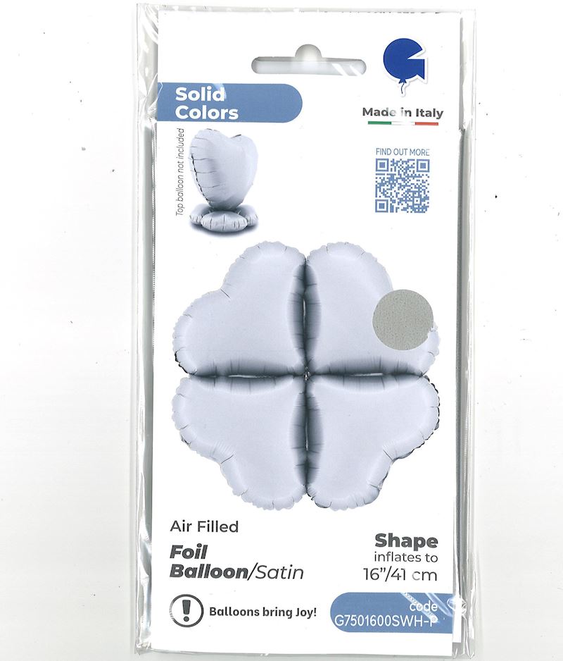 Ballon alum. Porte-ballon cœur Blanc satin, 41 cm en sachet