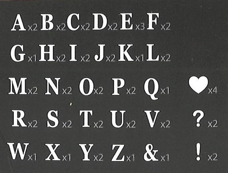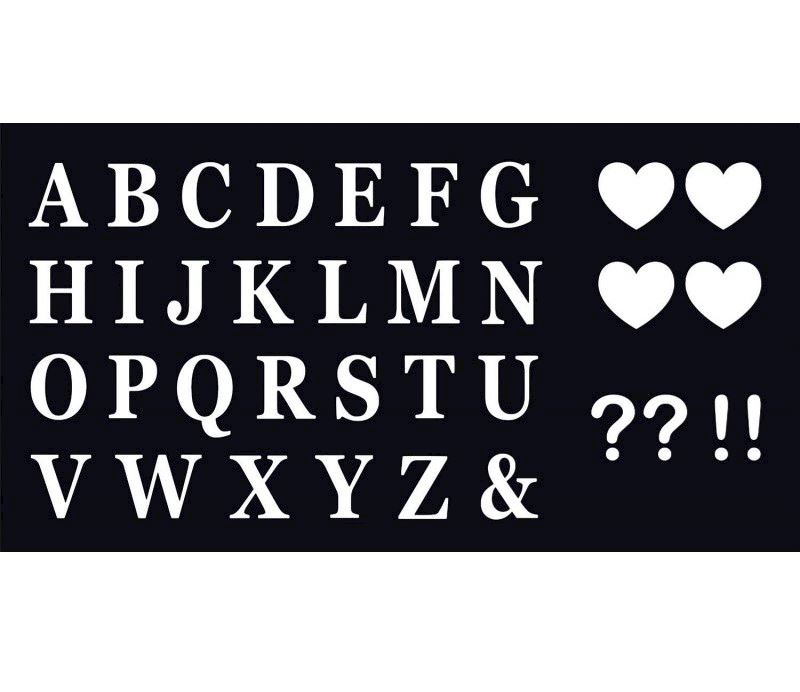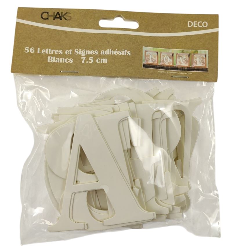 Set de 56 lettres adhesifs inkl. 4 coeurs 7.5 cm blanc