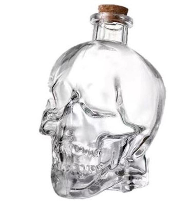 Fiole crâne verre avec bouchon 14 cm, 4 dl