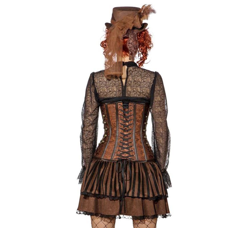 Corsage Steampunk avec fermeture éclair, brun-or