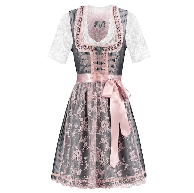 Dirndl vargent/rose avec tablier en dentelle, taille 50