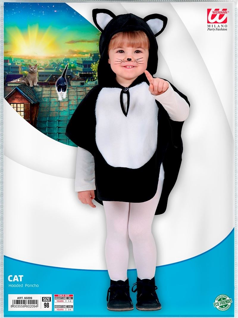 Costume peluche chat poncho avec capuche taille 1-2 ans