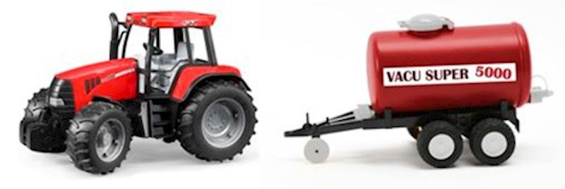 Le Case IH CVX 170 est un modèle à succès de Case. Il en va de même pour le modèle détaillé de BRUDER. La direction de l'essieu avant oscillant tout-terrain peut se faire directement via le volant dans la cabine de conduite ou via une rallonge de barre de direction fournie, que les enfants peuvent enfiler sur le volant à travers le toit ouvrant de la cabine de conduite. Le capot moteur peut être ouvert et permet ainsi de voir le bloc moteur. Des pneus profilés complètent le tableau. La remorque à tonneau fournie peut être remplie d'eau et les enfants peuvent ainsi reproduire de manière réaliste l'arrosage des champs.