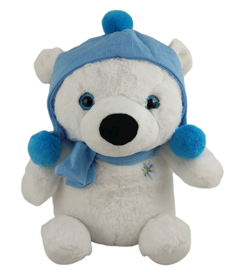 Peluche Ours polaire avec bonnet 35 cm
