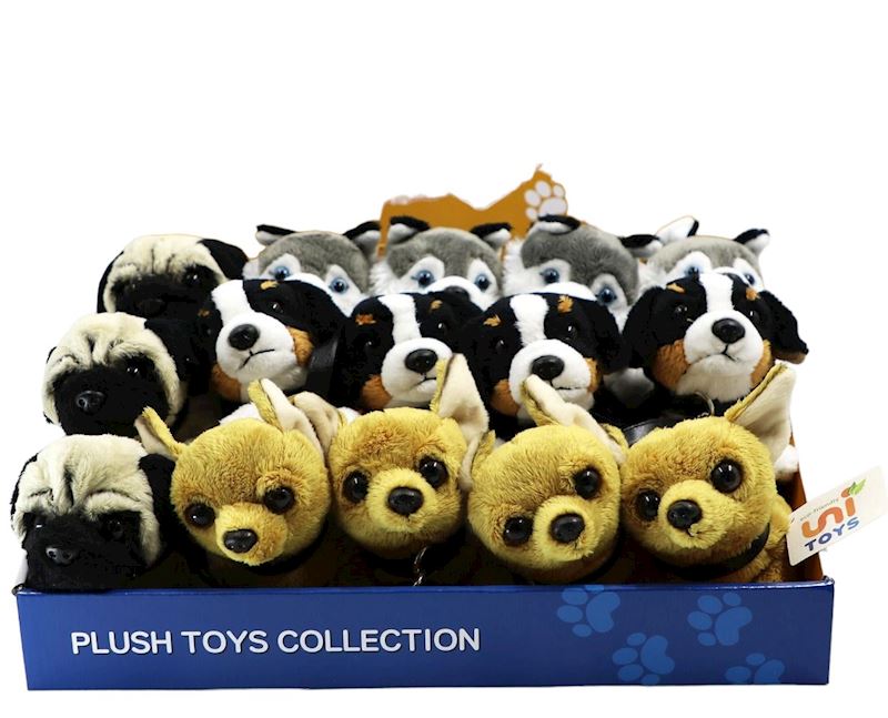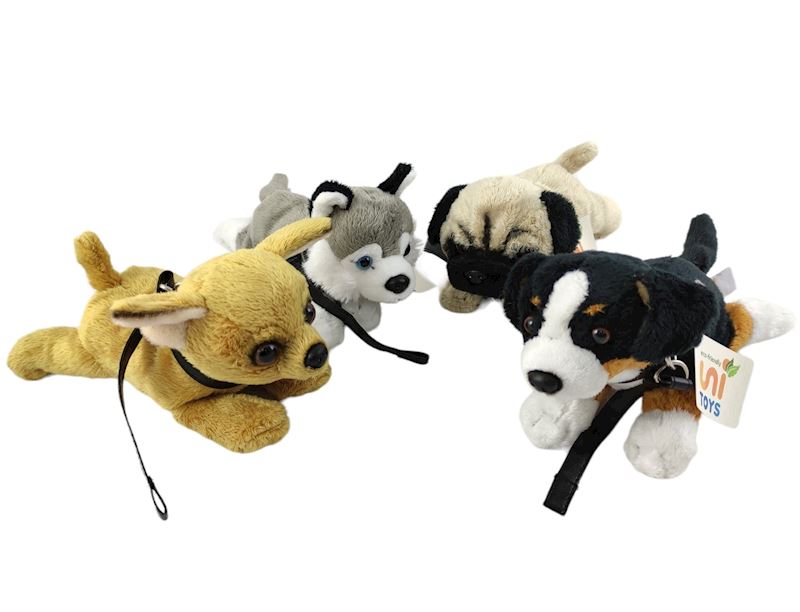 Peluche chien Mops, Chihuaua, Bernois, Husky avec laisse