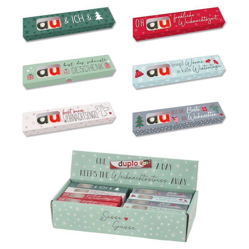 Chocolat Duplo dans un box cadeaux noël, text en allemand