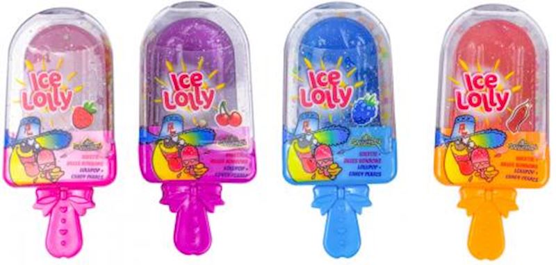 - Lollipop: Zucker, Glukosesirup, künstliche Aromen, Milchsäure, Farbstoffe (E120, E133, E100)