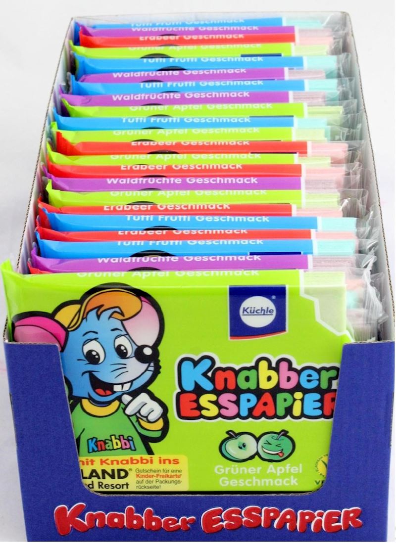 - WEIZENMEHL, Stärke, Rote-Bete-Saftkonzentrat, Aromen, Farbstoff: Kupferhaltige Komplexe der Chlorophylle und Chlorophylline, Kurkumin, Anthocyane, Brillantblau FCF; Emulgator: Lecithine; Süßungsmittel: Sucralose.