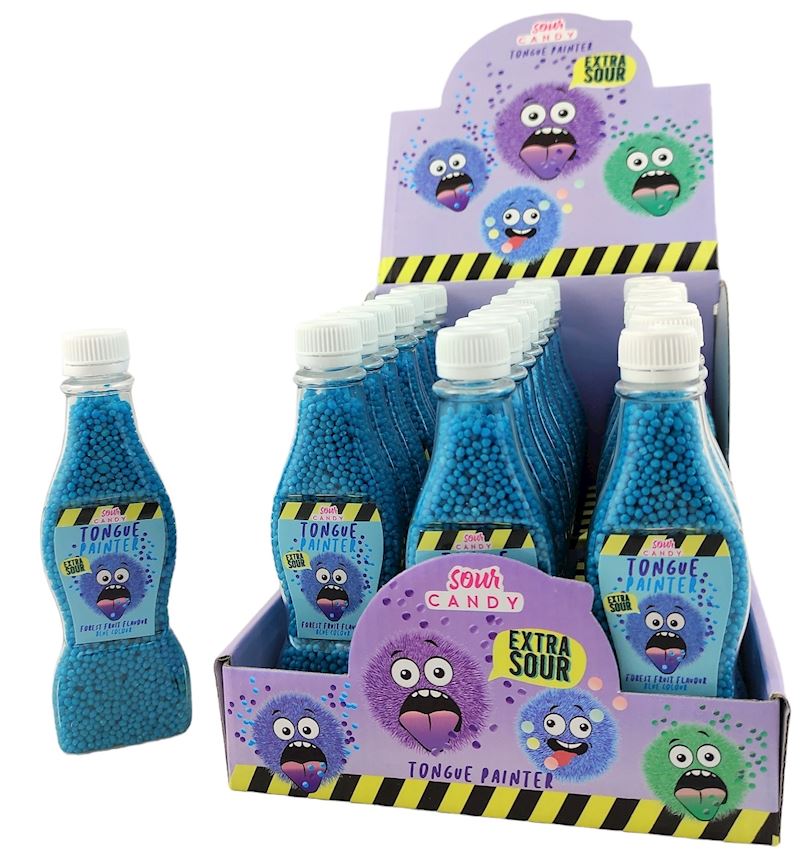 - Zucker, Säureregulator: Apfelsäure (E296), Aroma, Farbstoff: Brillantblau FCF (E133)