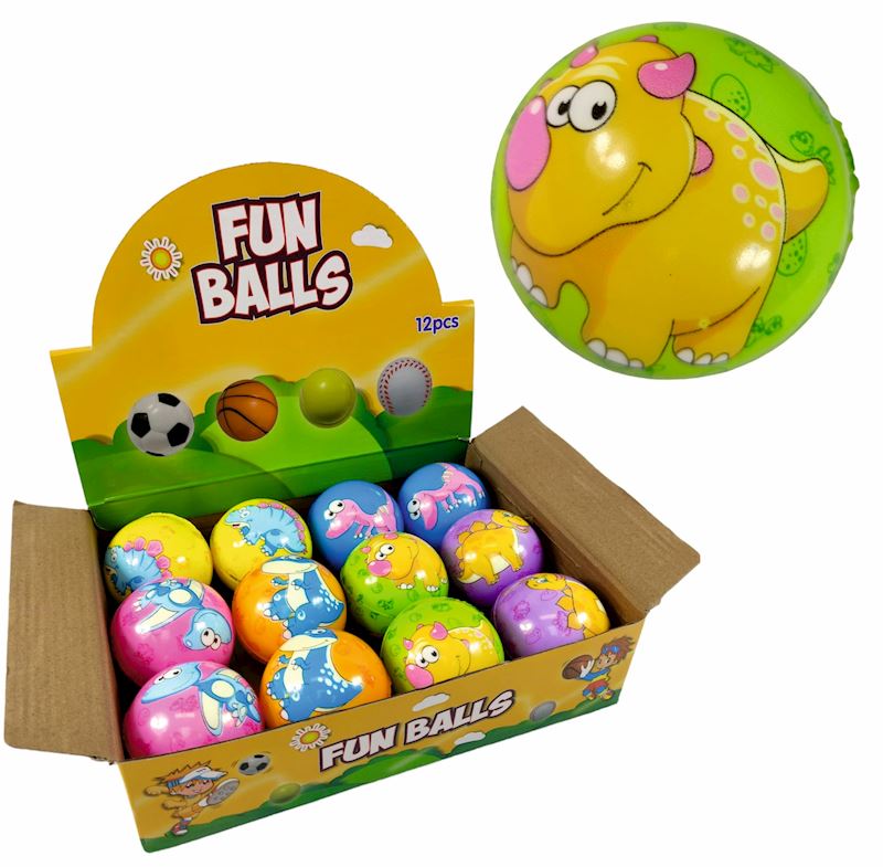Balle en caoutchouc dinosaure 10 cm, 6 ass.