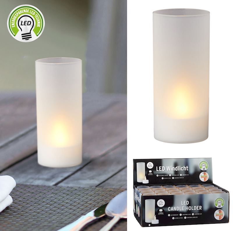 LED bougie cire ronde, blanc 12.5x7.5cm ex piles