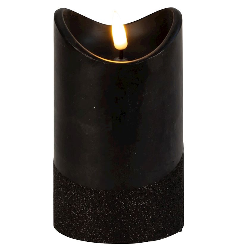 LED bougie cire ronde, noir 10x7.5 cm ex piles
