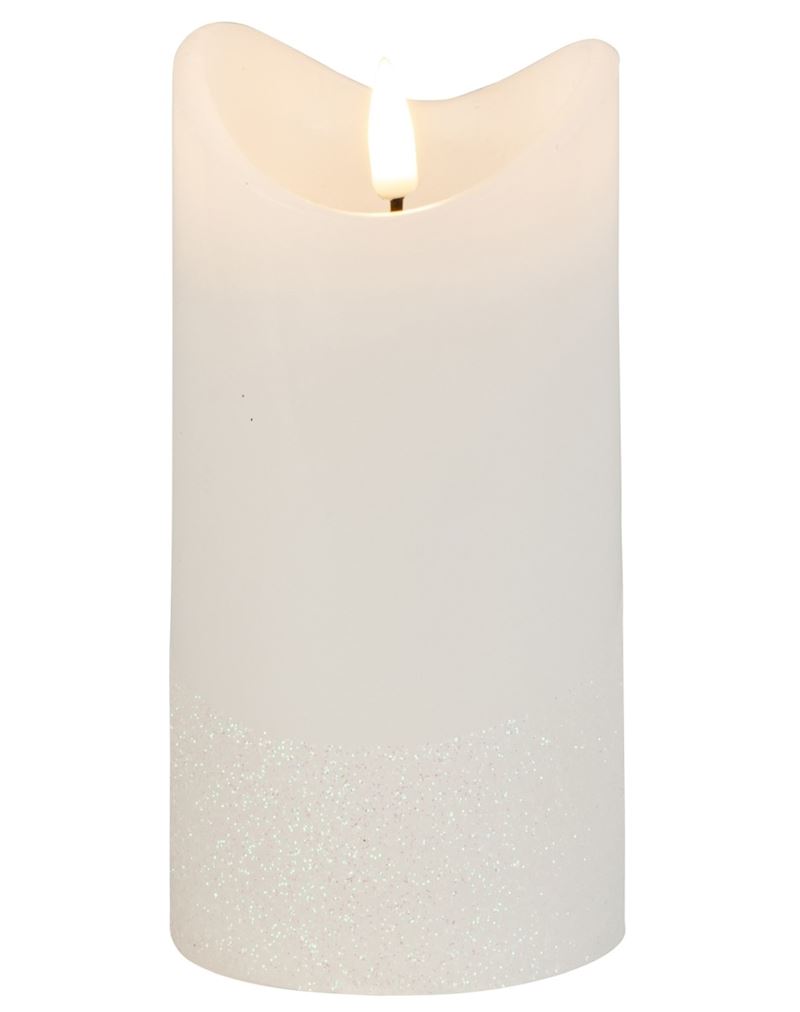 LED bougie cire ronde, blanc 15x7.5cm ex piles